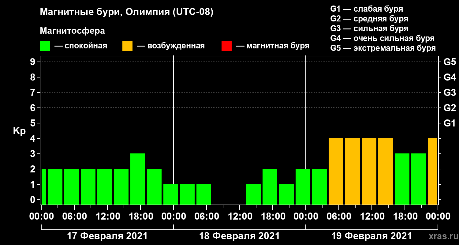 Магнитные бури в Олимпии 19 февраля 2021 года