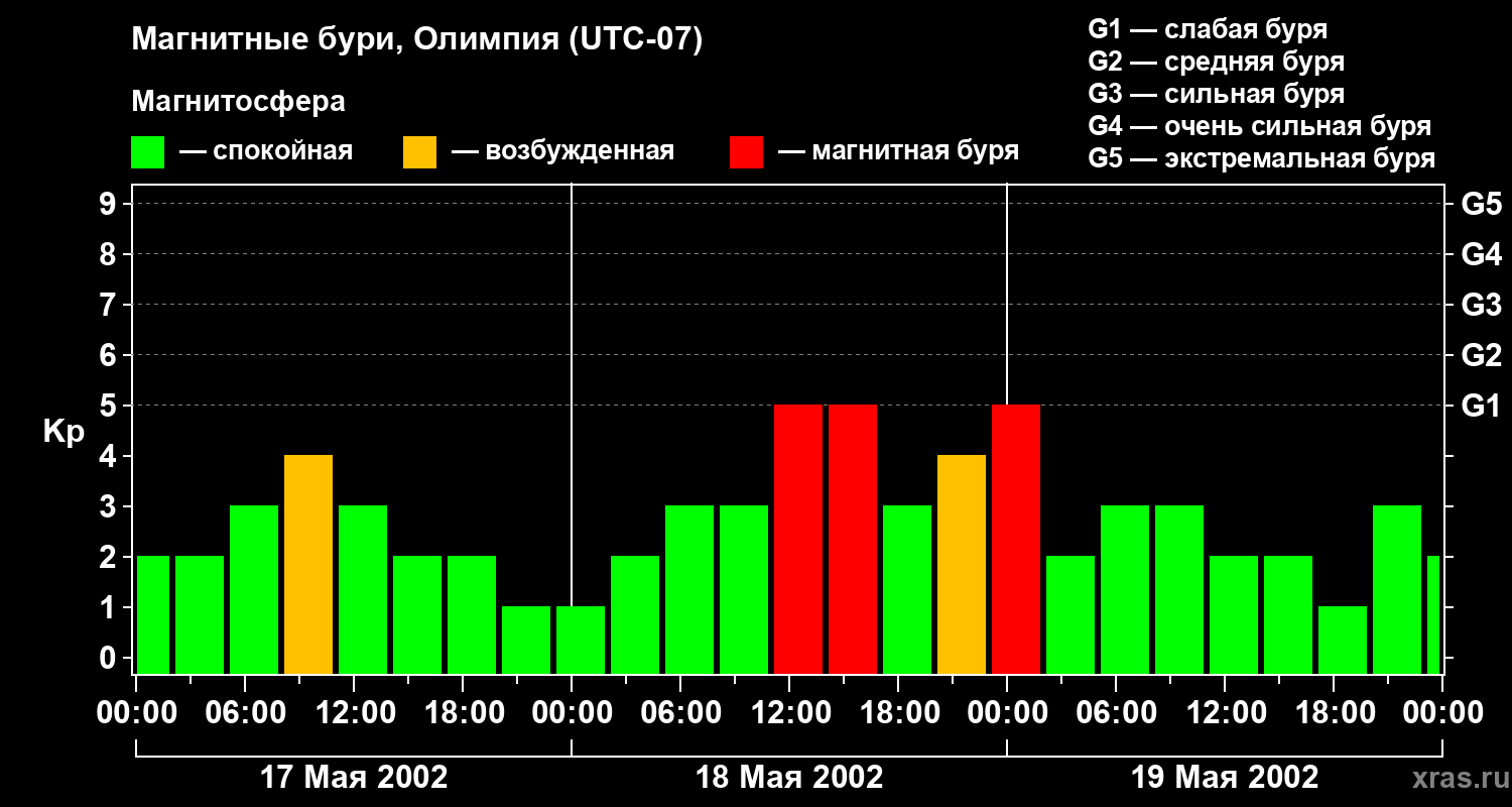 Магнитные бури в Олимпии — 19 мая 2002 года