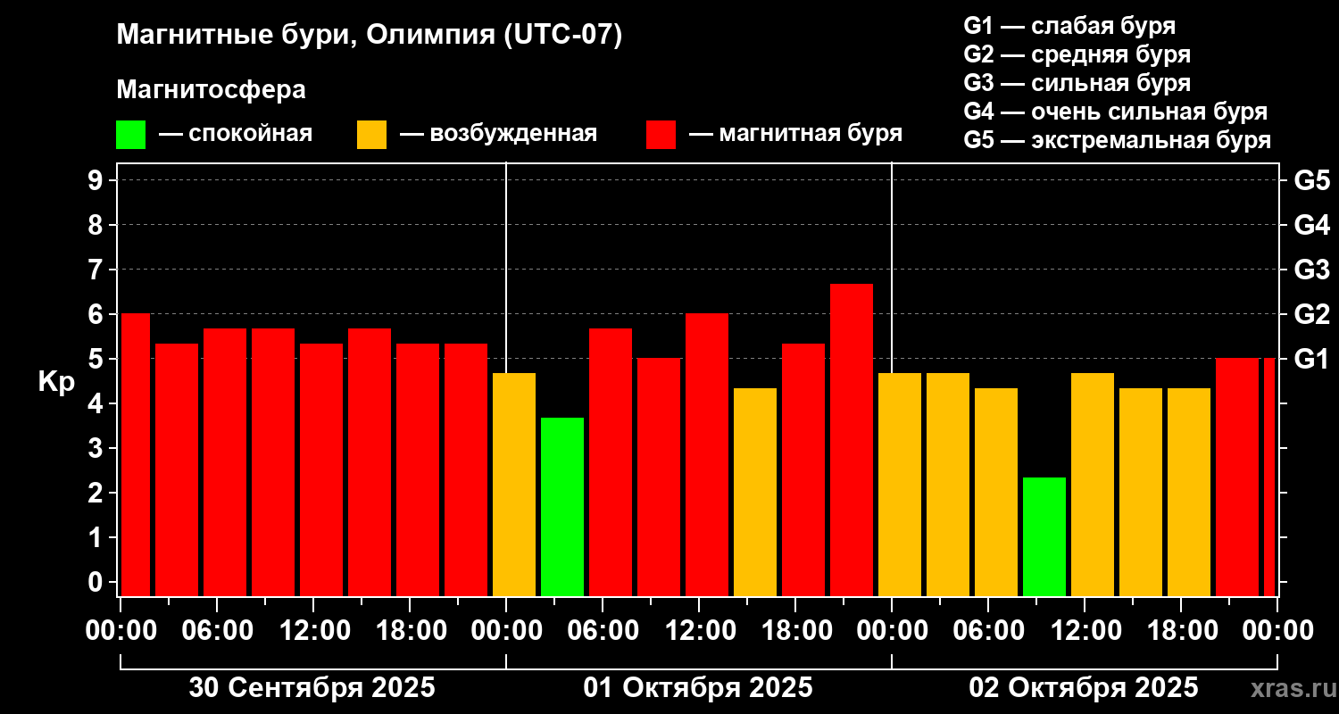 Магнитные бури в Олимпии — 2 октября 2025 года
