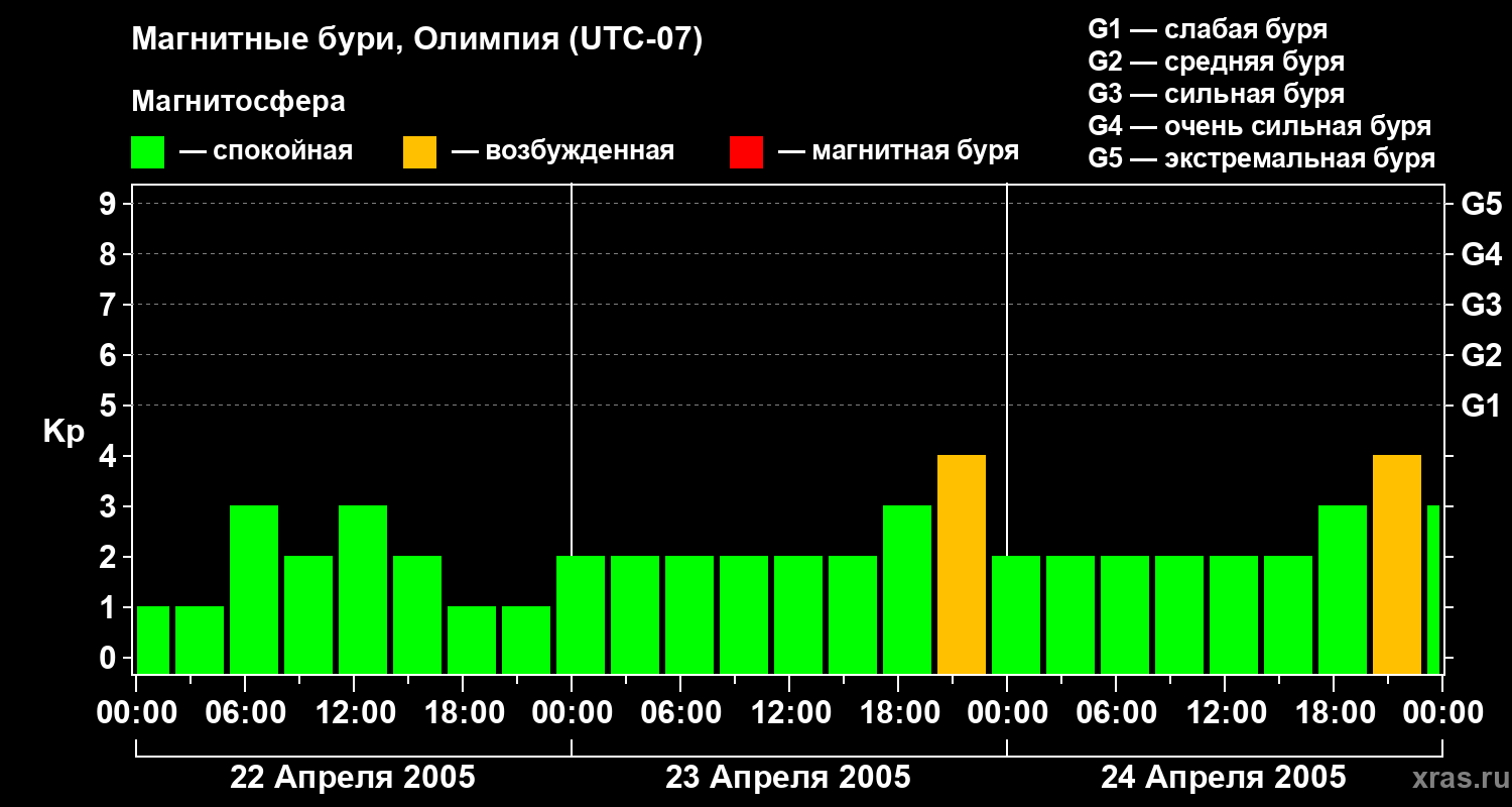 Магнитные бури в Олимпии — 24 апреля 2005 года