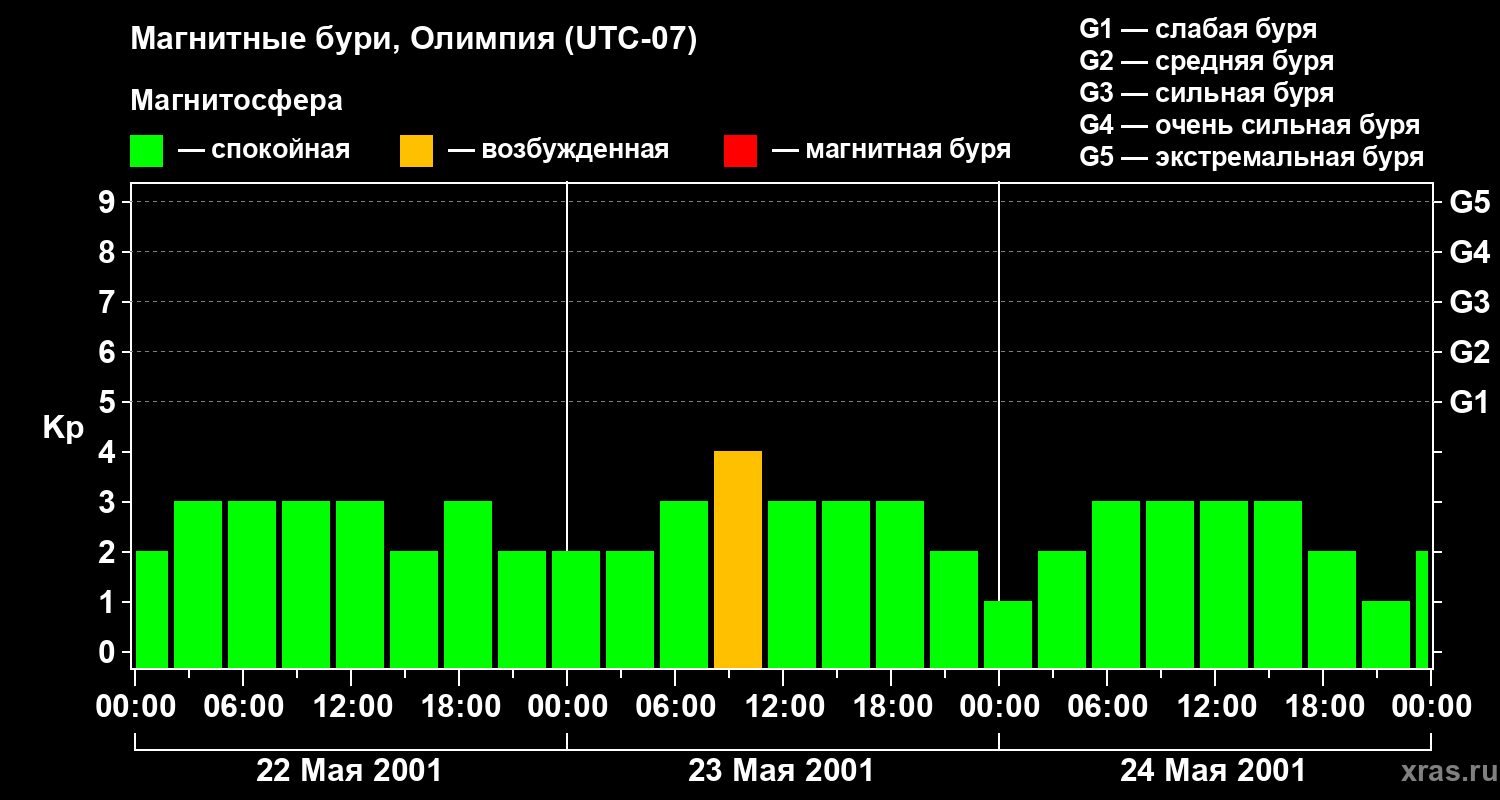 Магнитные бури в Олимпии — 24 мая 2001 года