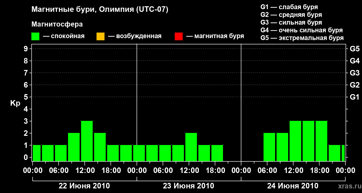 Магнитные бури в Олимпии — 24 июня 2010 года