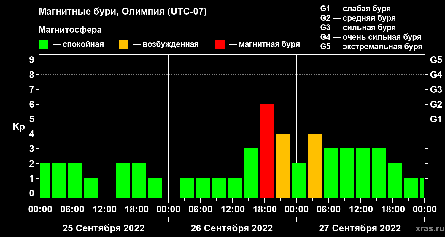 Магнитные бури в Олимпии 27 сентября 2022 года
