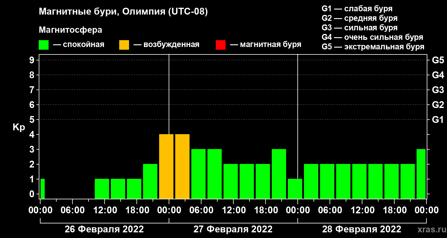Магнитные бури в Олимпии — 28 февраля 2022 года