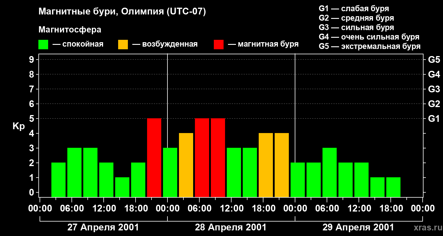 Магнитные бури в Олимпии — 29 апреля 2001 года