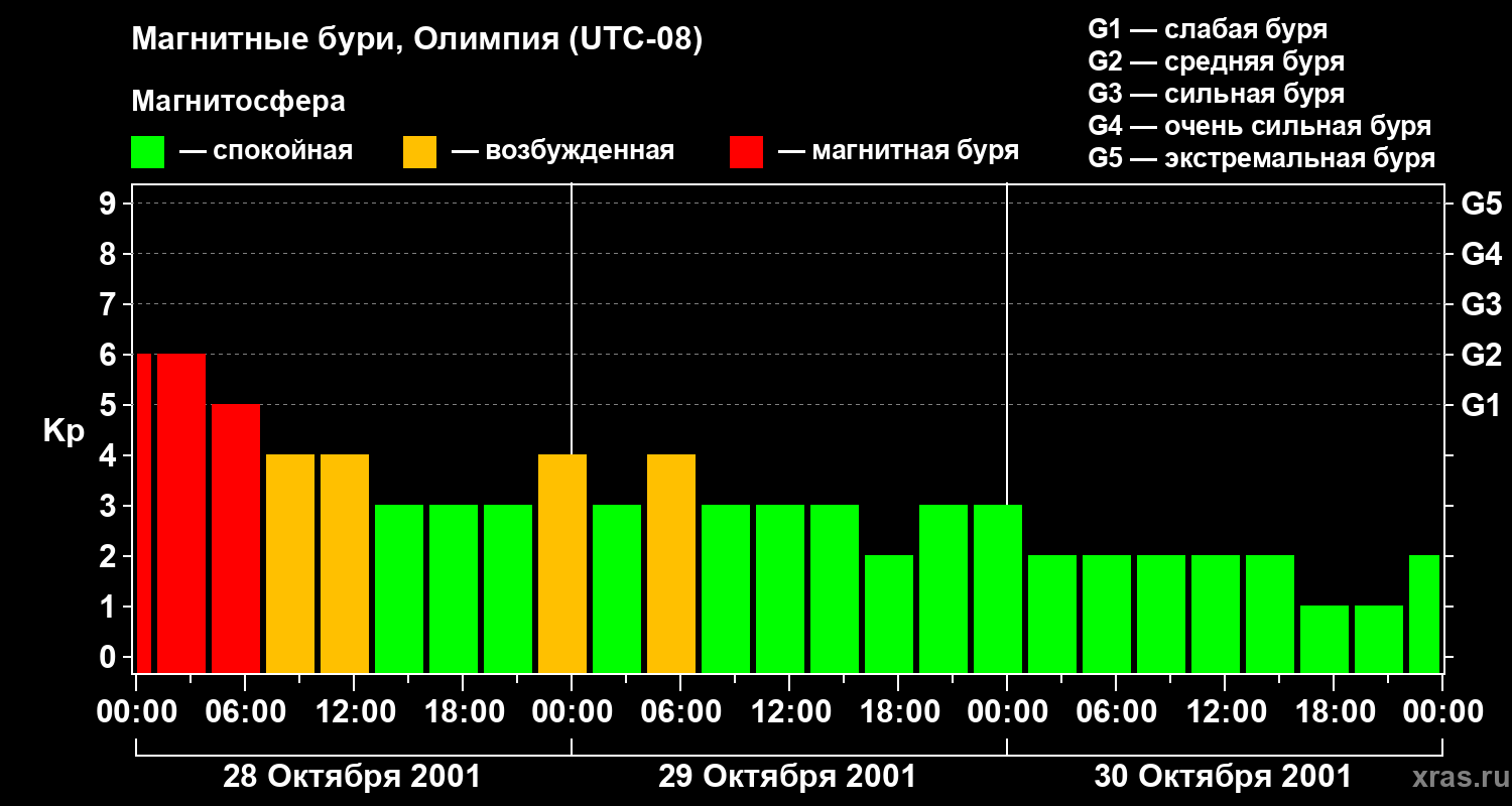 Магнитные бури в Олимпии — 30 октября 2001 года