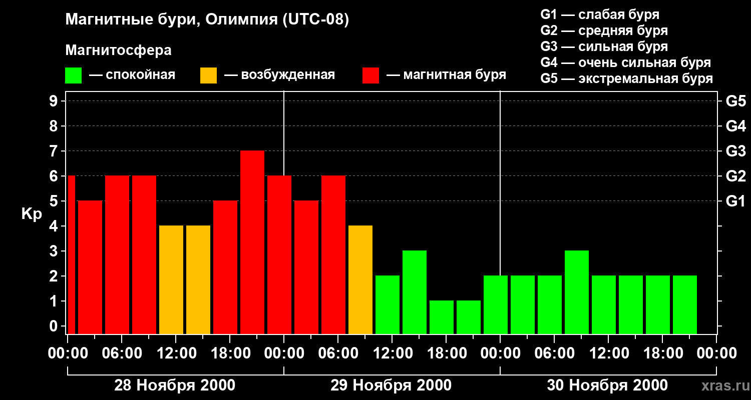 Магнитные бури в Олимпии 30 ноября 2000 года