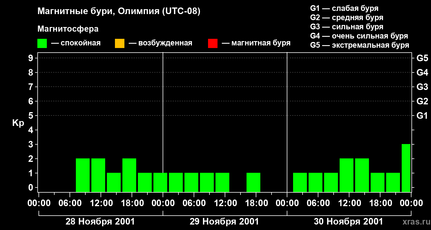 Магнитные бури в Олимпии — 30 ноября 2001 года