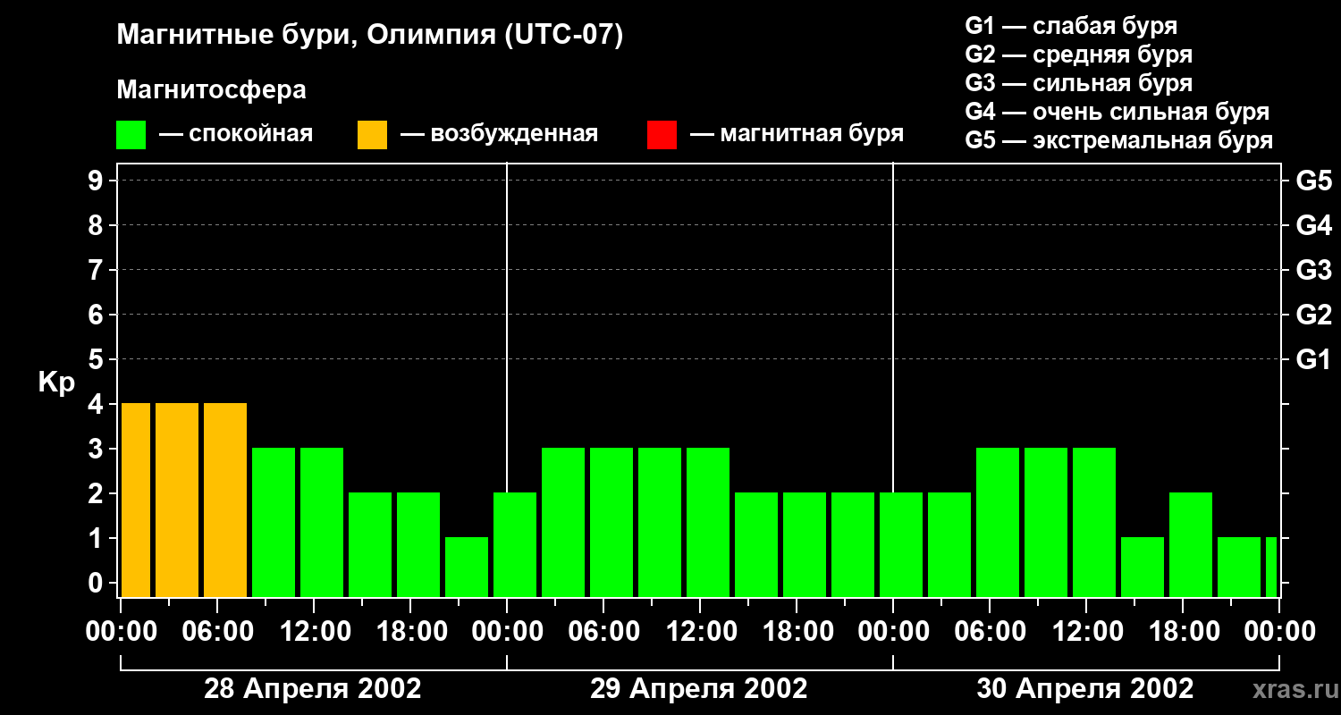 Магнитные бури в Олимпии — 30 апреля 2002 года
