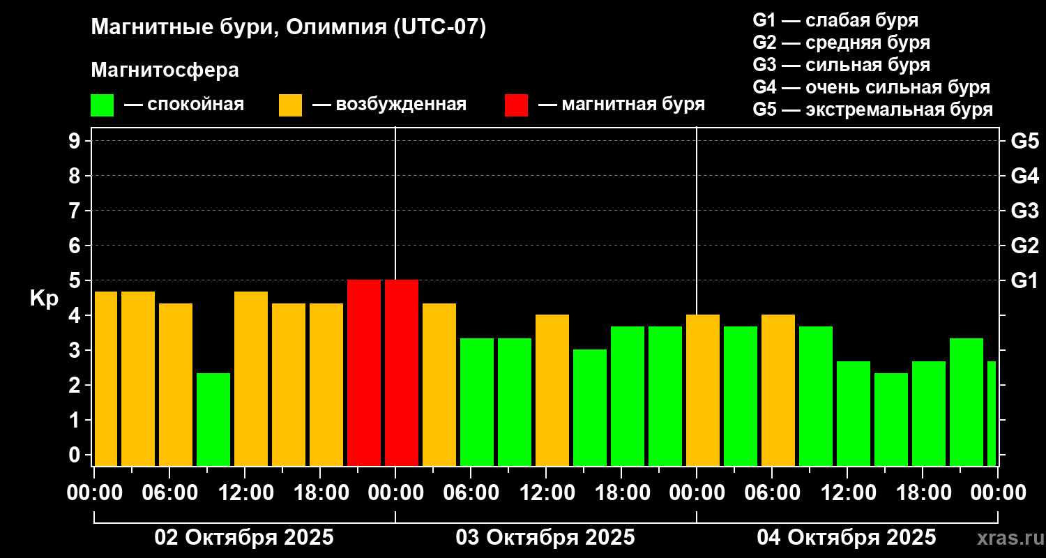 Магнитные бури в Олимпии 4 октября 2025 года