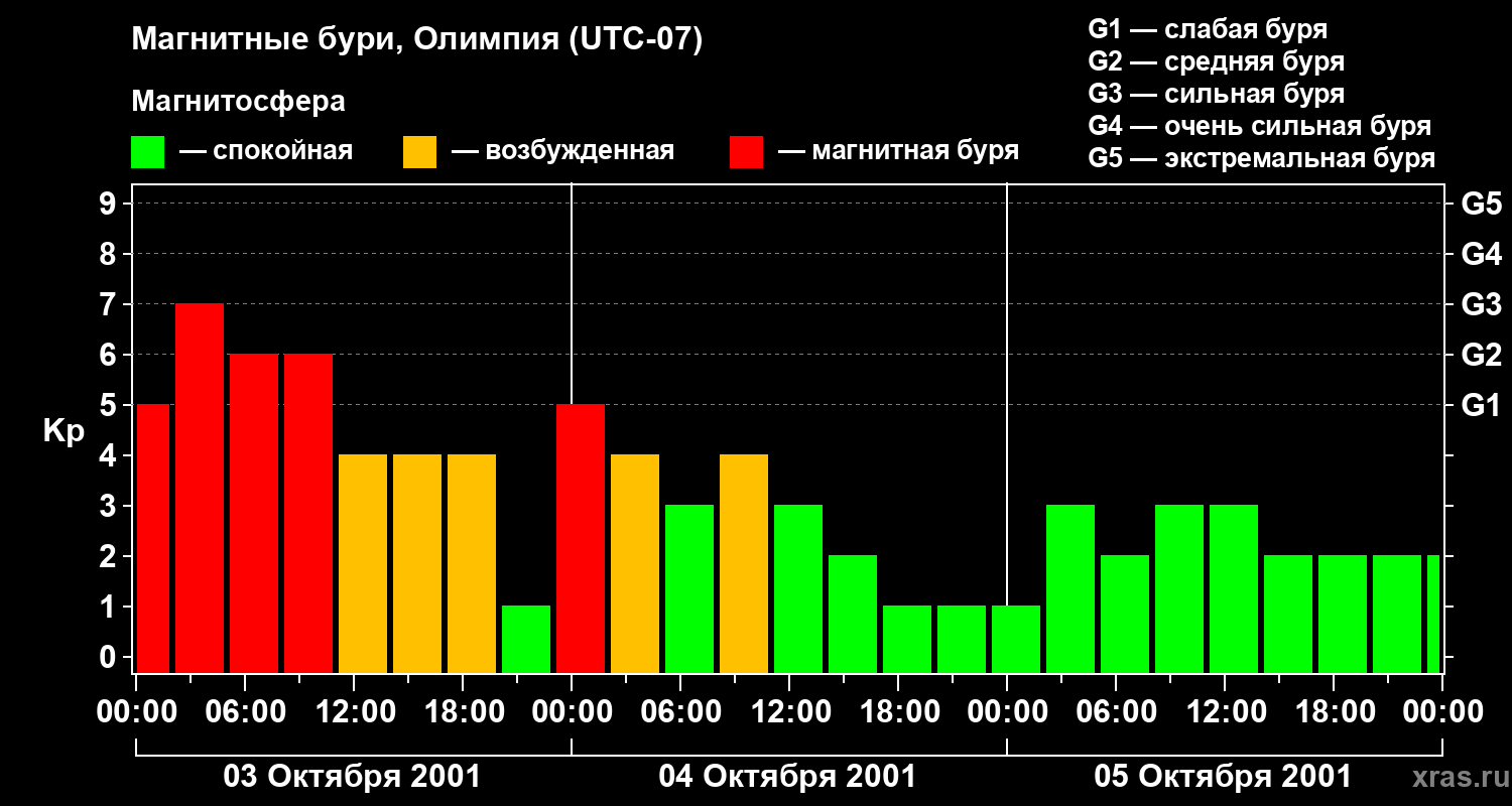 Магнитные бури в Олимпии 5 октября 2001 года