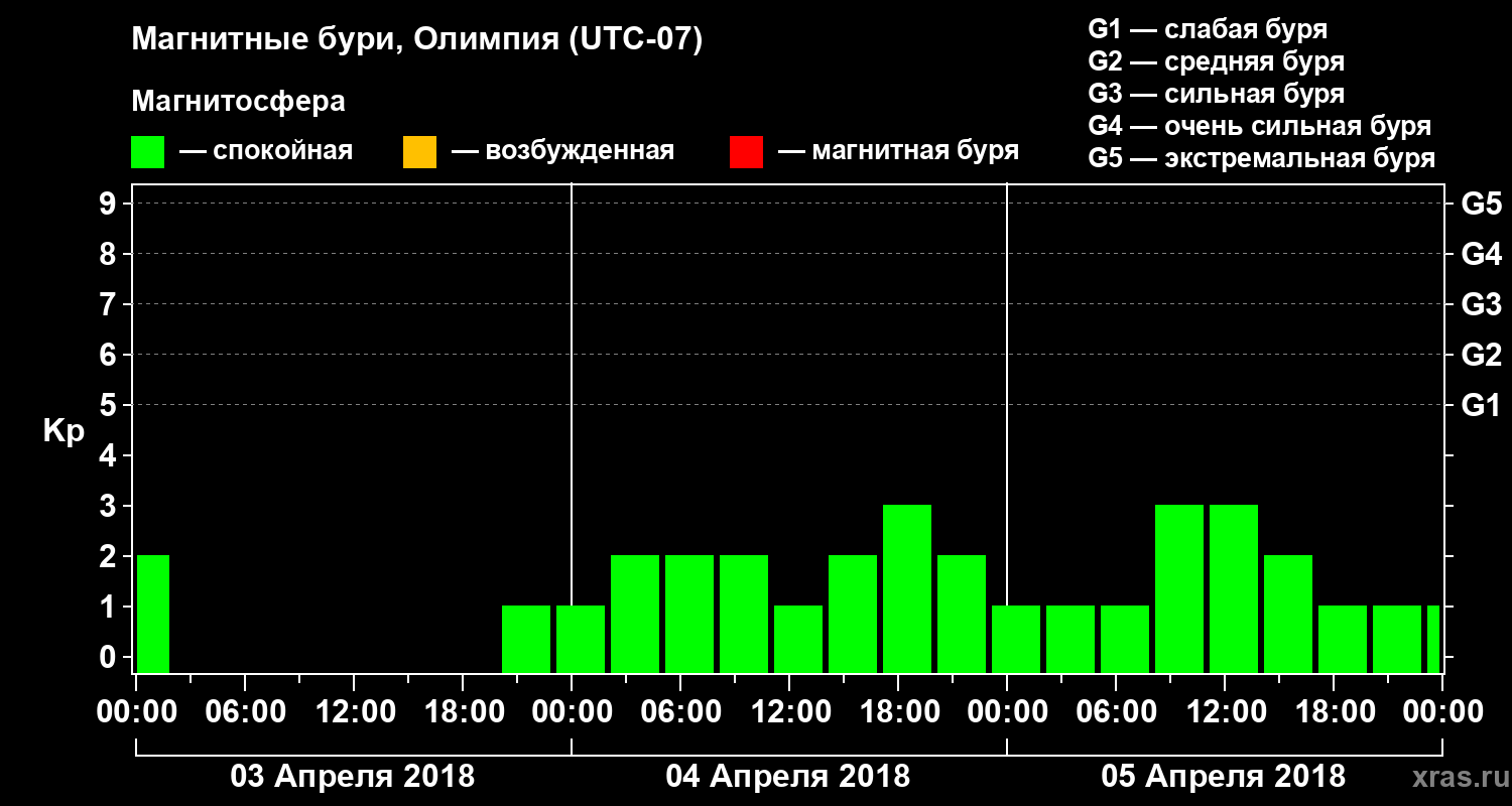 Магнитные бури в Олимпии 5 апреля 2018 года