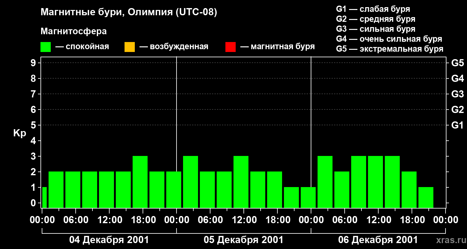 Магнитные бури в Олимпии — 6 декабря 2001 года