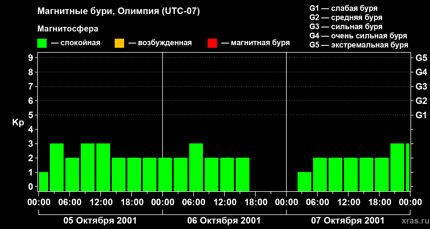 Магнитные бури в Олимпии — 7 октября 2001 года