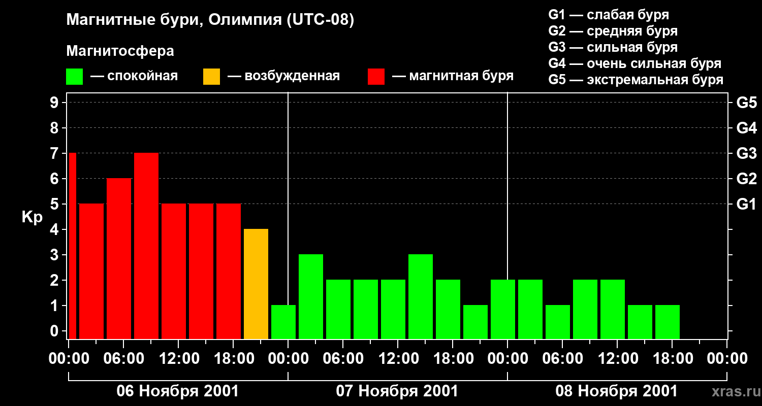 Магнитные бури в Олимпии — 8 ноября 2001 года