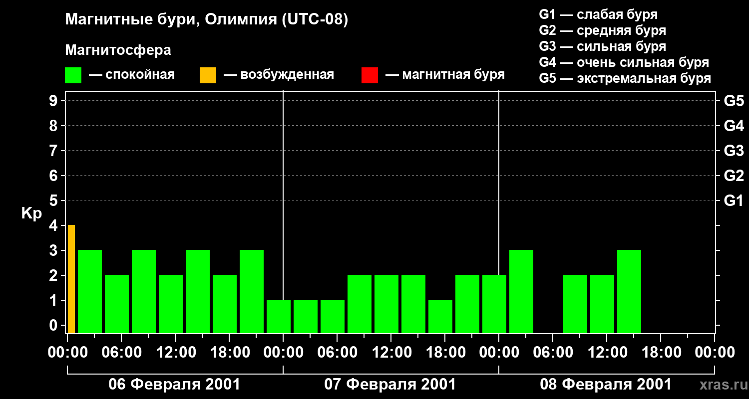 Магнитные бури в Олимпии 8 февраля 2001 года