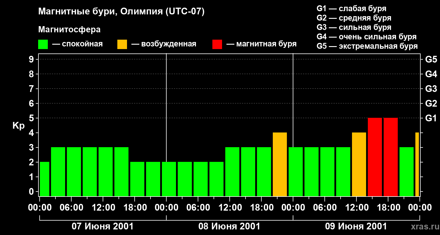 Магнитные бури в Олимпии — 9 июня 2001 года