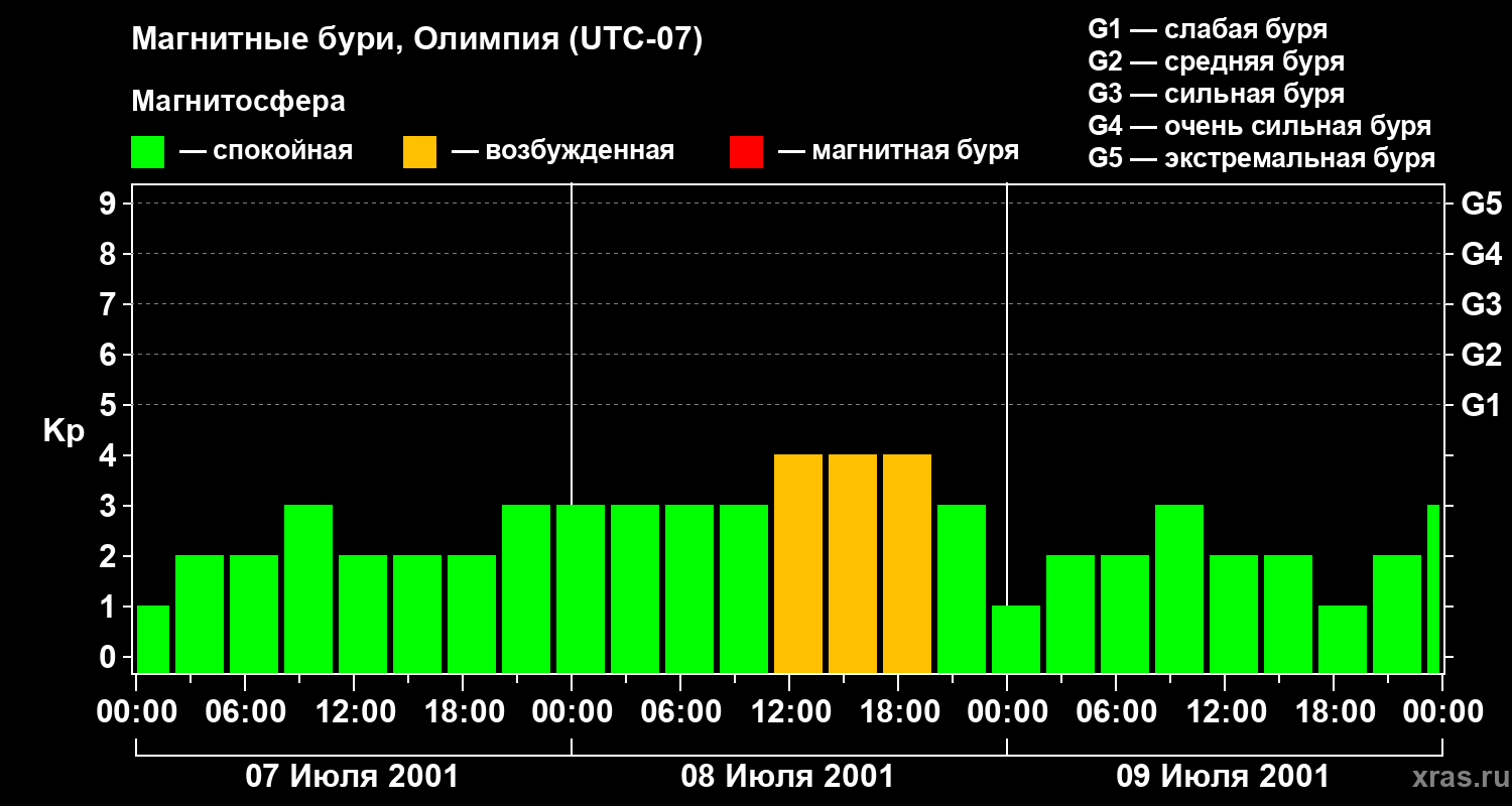 Магнитные бури в Олимпии — 9 июля 2001 года