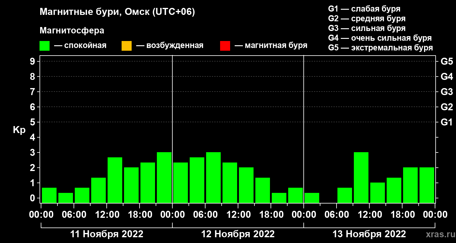 Изменения геомагнитного индекса Kp с 11 по 13 ноября 2022 года для средних широт