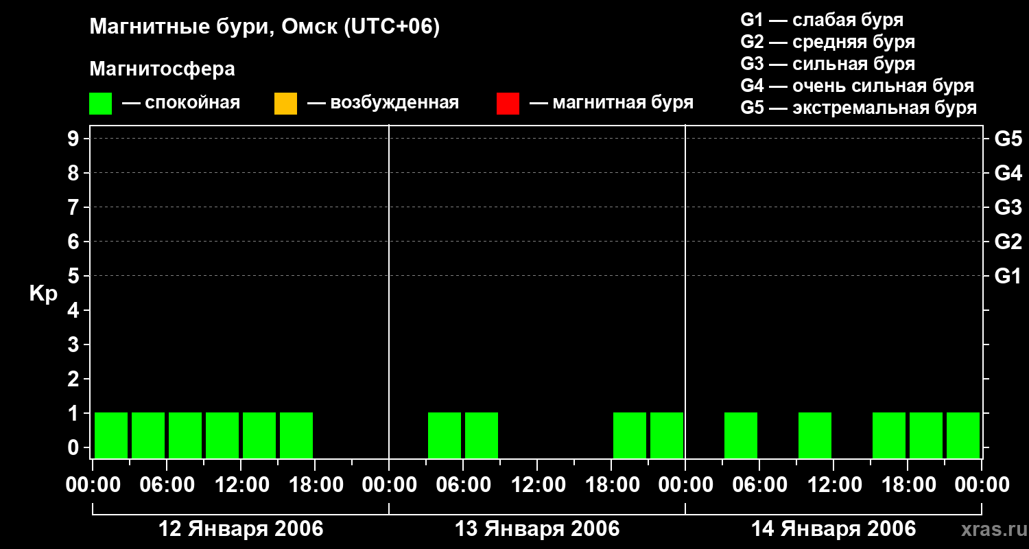 Изменения геомагнитного индекса Kp с 12 по 14 января 2006 года для средних широт