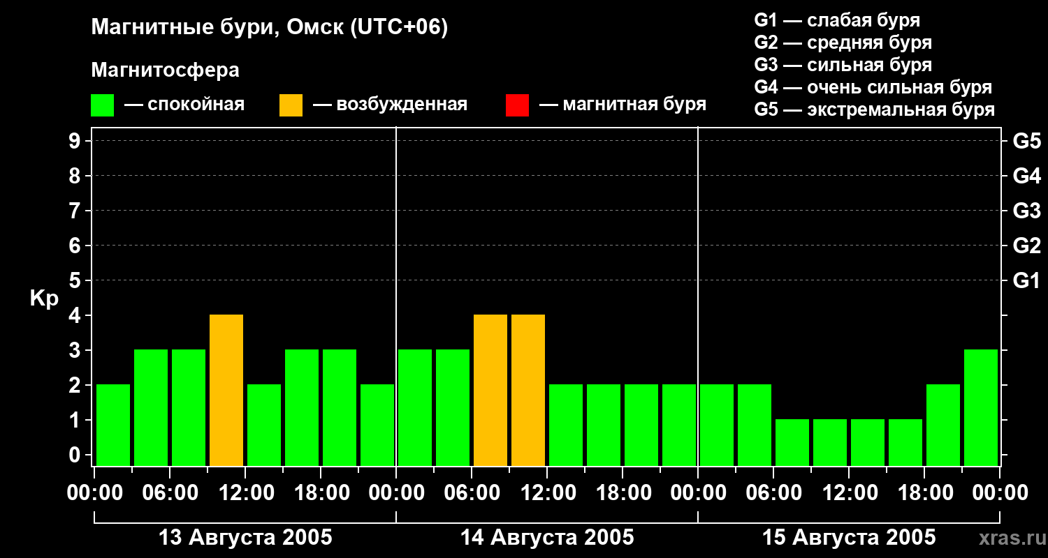 Магнитные бури в Омске — 15 августа 2005 года