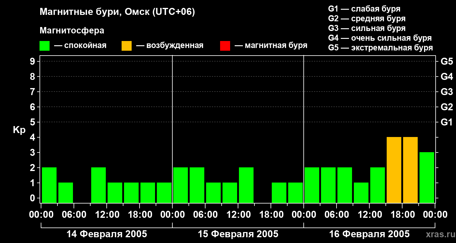 Магнитные бури в Омске — 16 февраля 2005 года