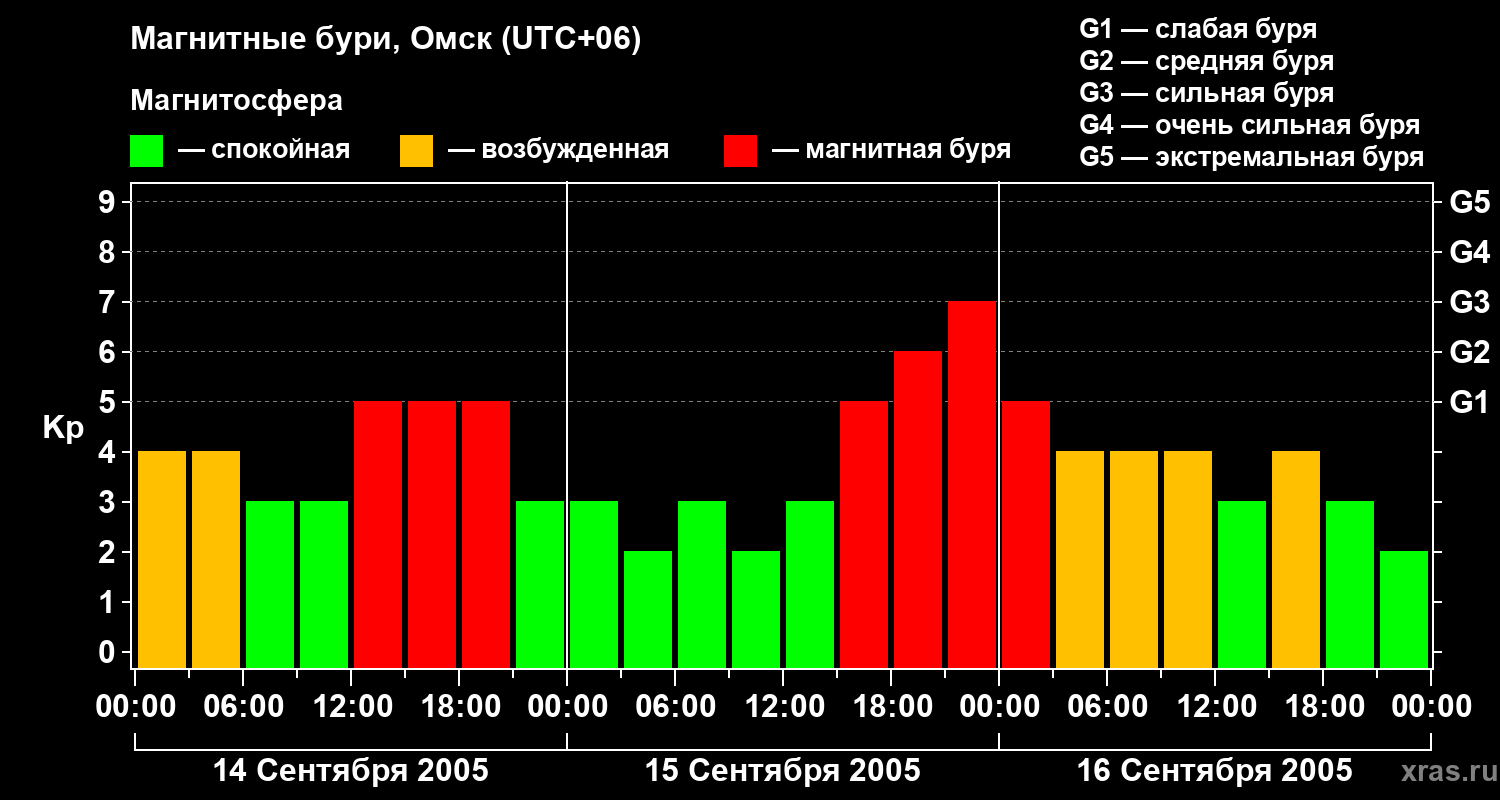 Магнитные бури в Омске — 16 сентября 2005 года