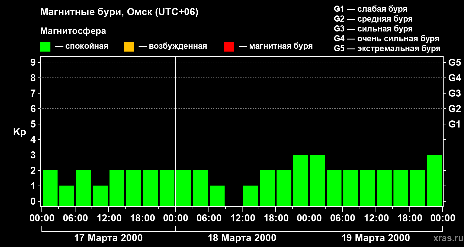 магнитосфера Земли была спокойной (Kp = 3.00)
