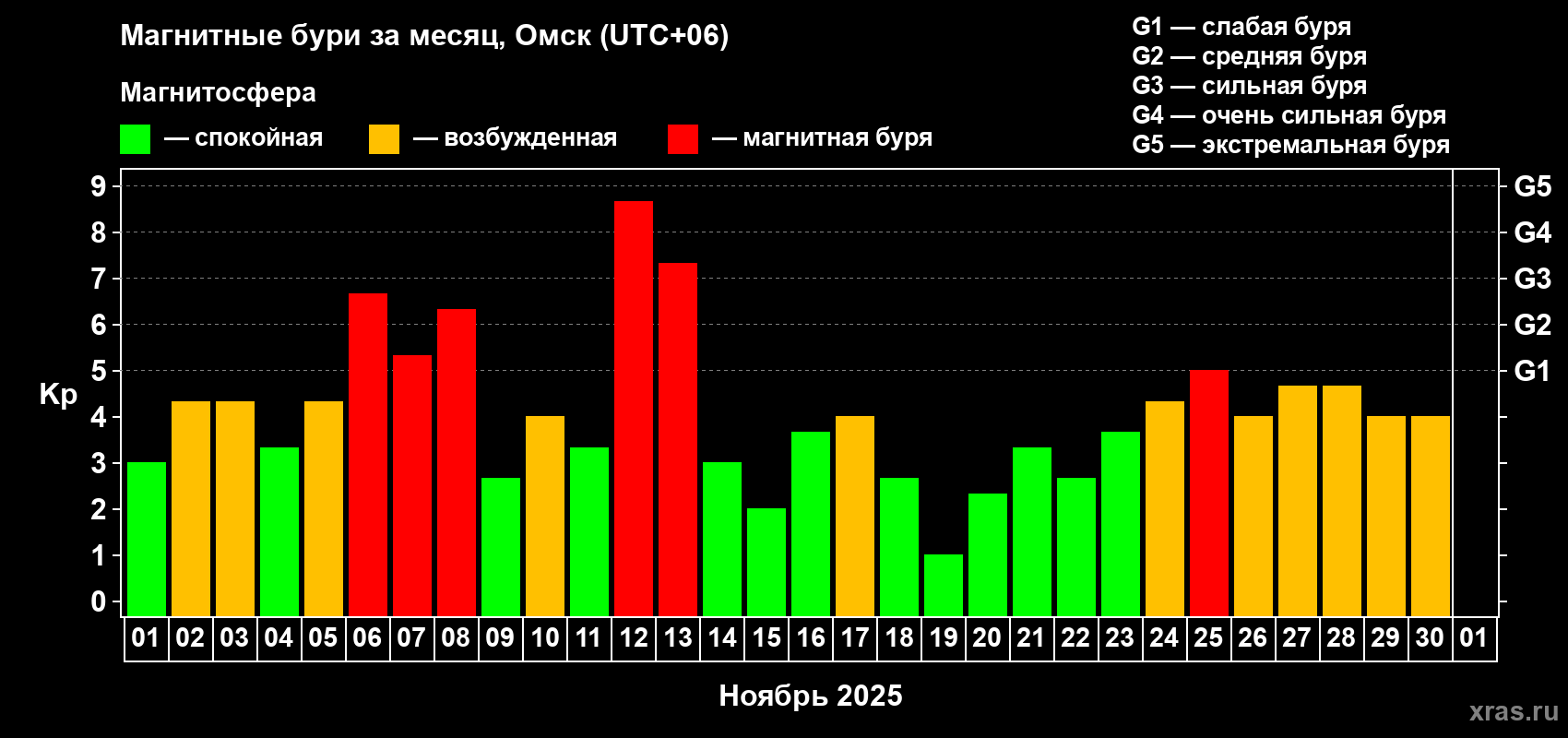 Магнитные бури в Омске в ноябре 2025 года