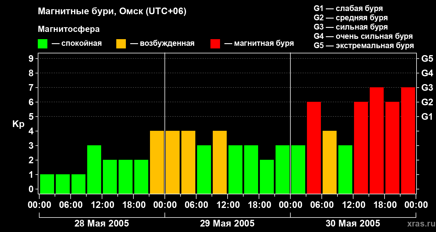 Магнитные бури в Омске — 30 мая 2005 года