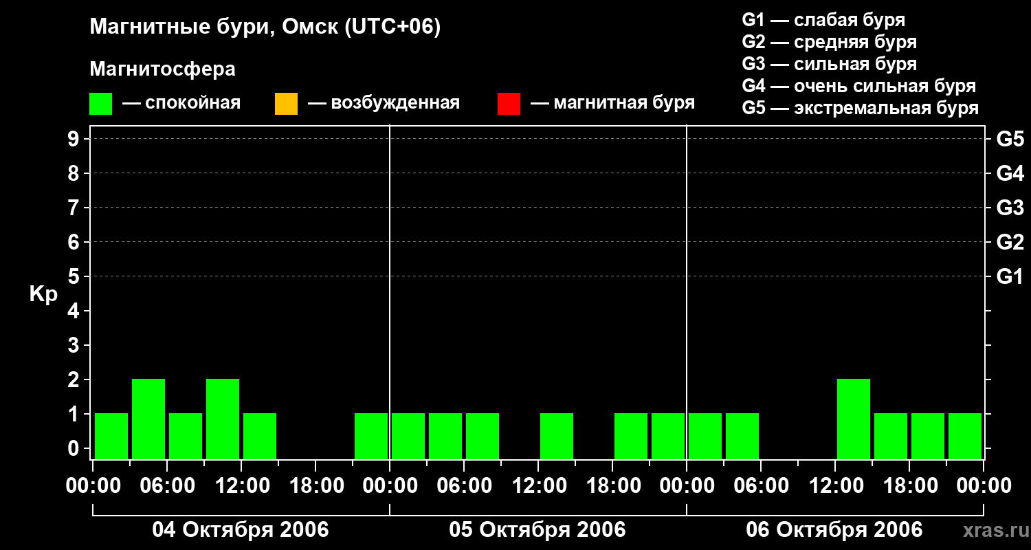 Изменения геомагнитного индекса Kp с 4 по 6 октября 2006 года для средних широт