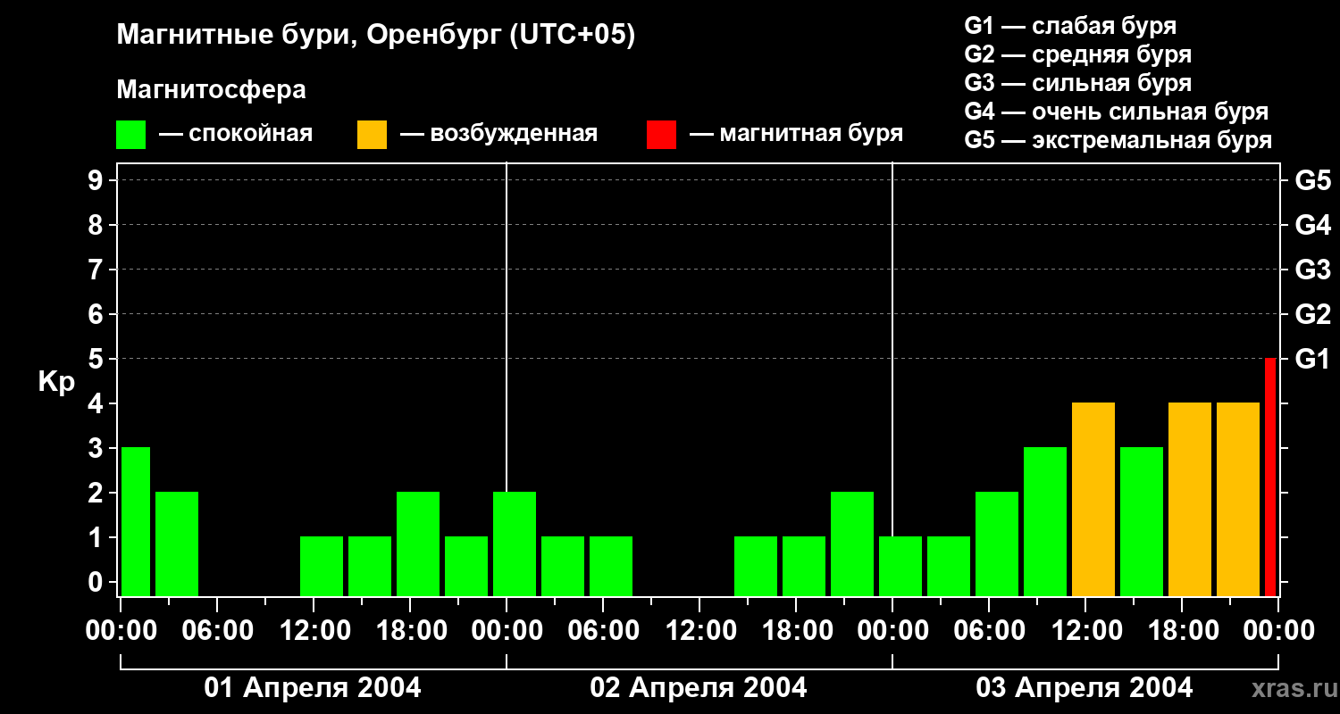 Магнитные бури в Оренбурге — 3 апреля 2004 года