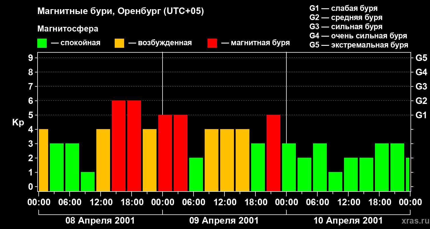 Магнитные бури в Оренбурге — 10 апреля 2001 года