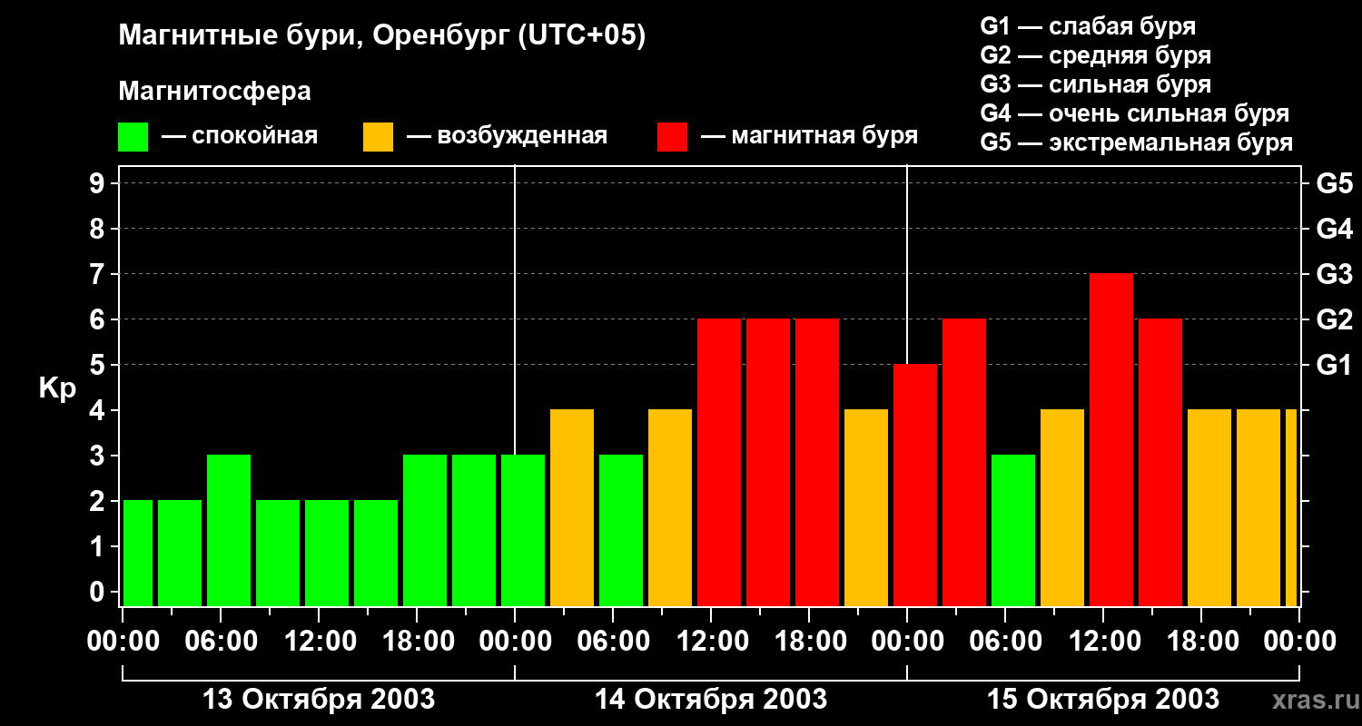 Магнитные бури в Оренбурге — 15 октября 2003 года