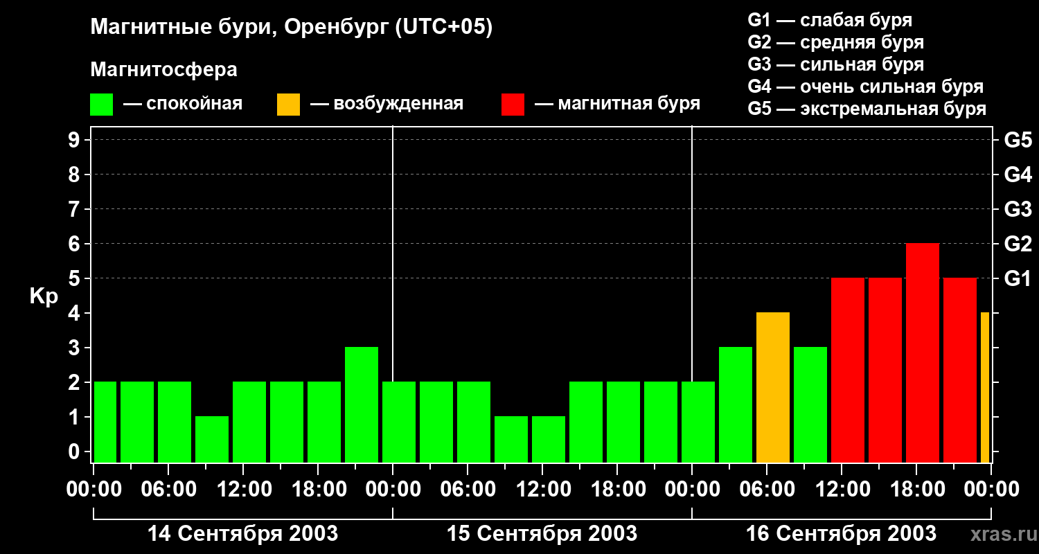 Магнитные бури в Оренбурге в сентябре 2003 года