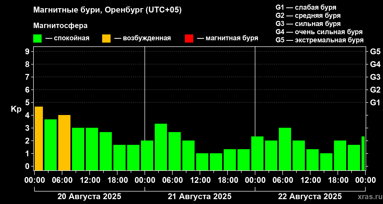 Магнитные бури в Оренбурге 22 августа 2025 года