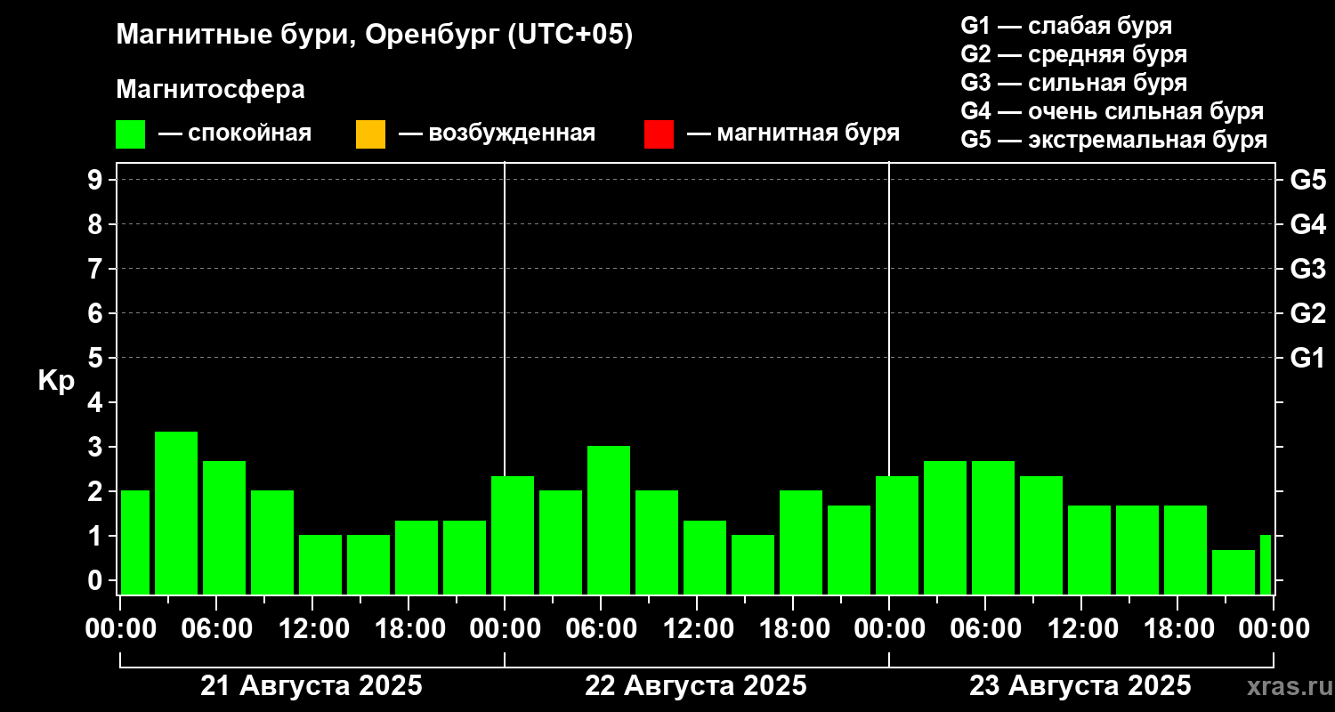 Магнитные бури в Оренбурге 23 августа 2025 года