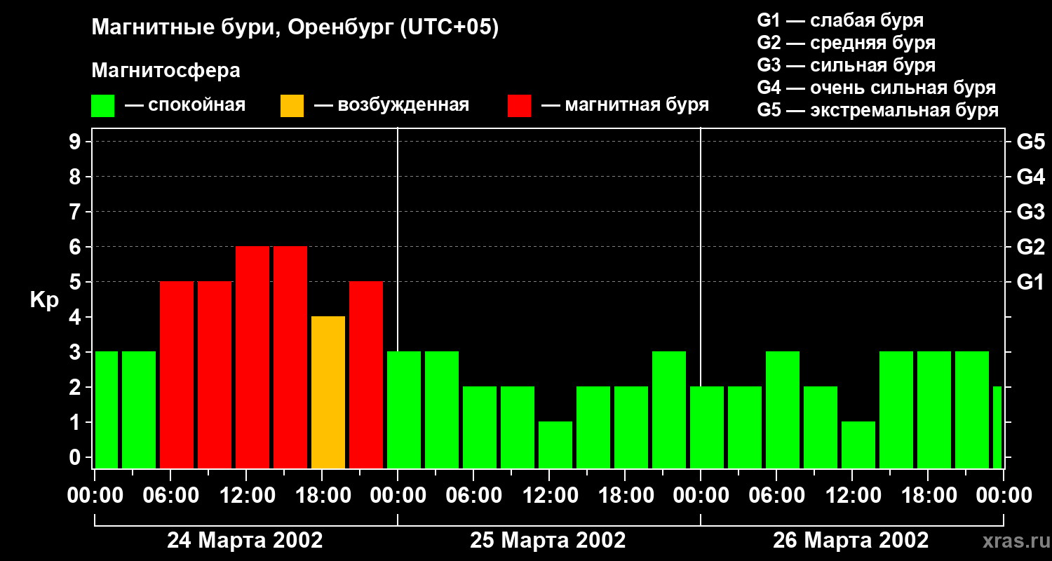 Магнитные бури в Оренбурге — 26 марта 2002 года