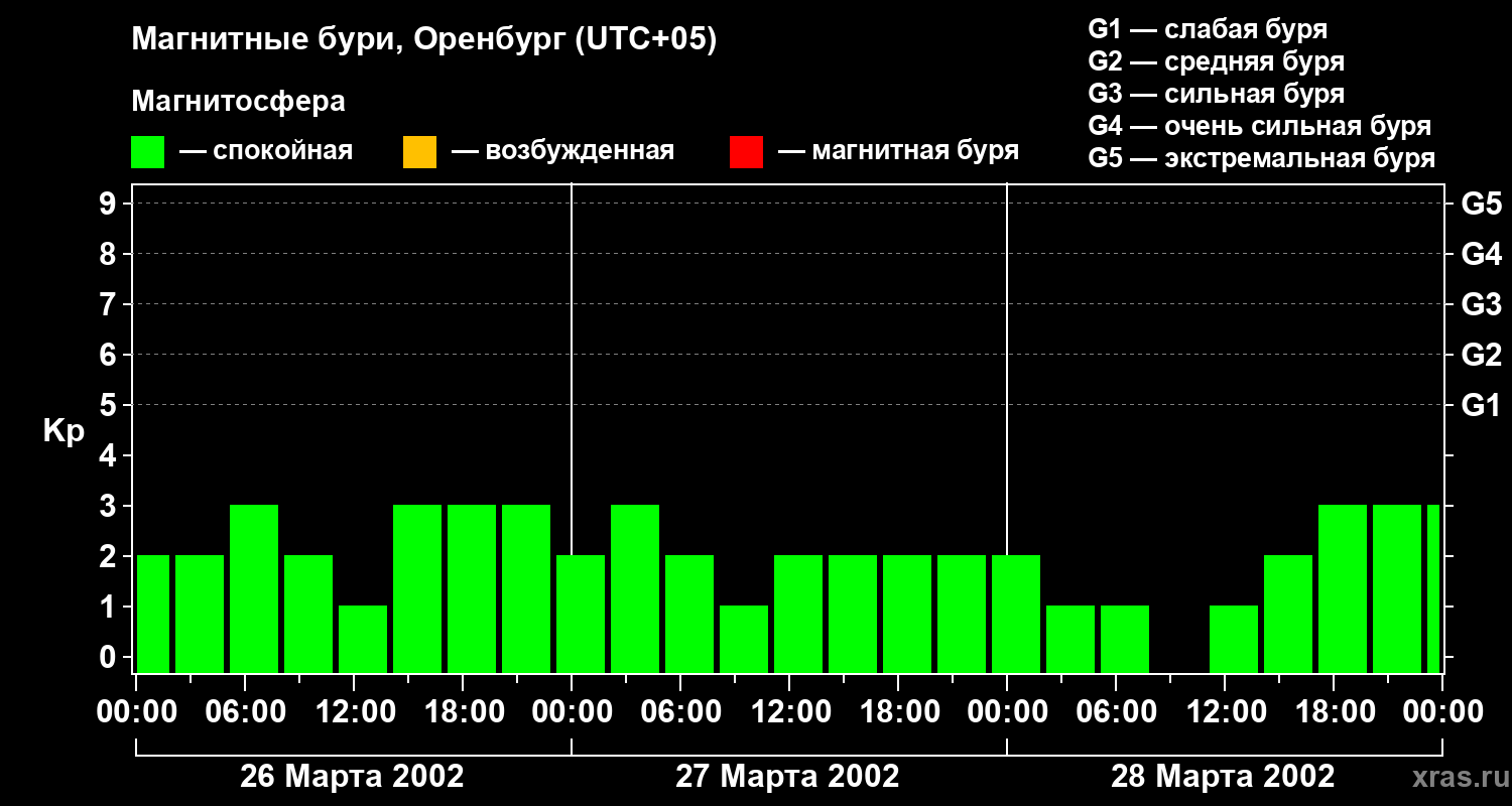 Магнитные бури в Оренбурге — 28 марта 2002 года