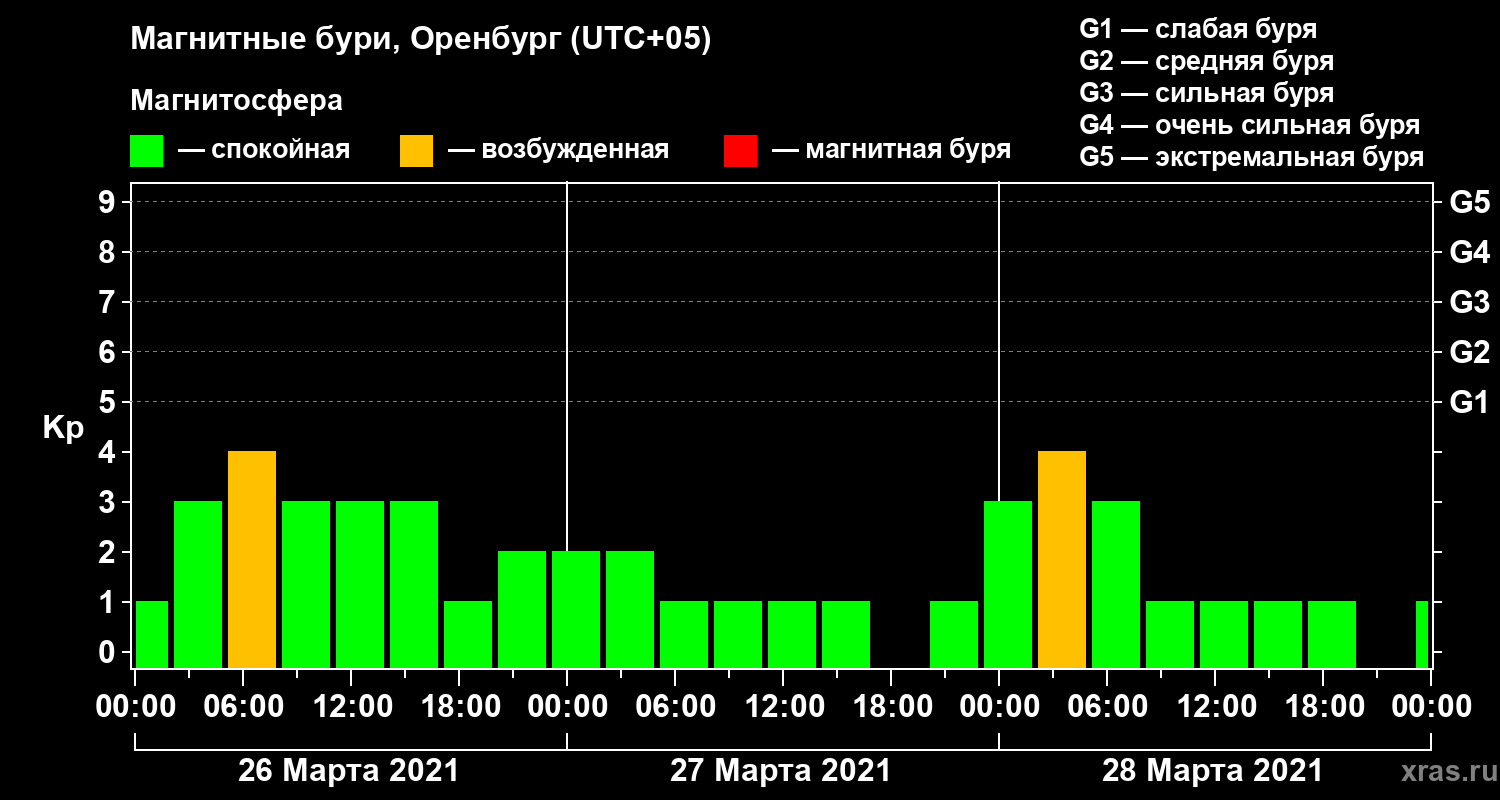 Магнитные бури в Оренбурге 28 марта 2021 года