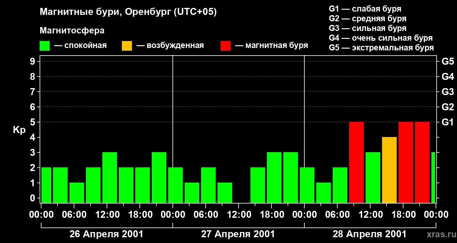 Магнитные бури в Оренбурге — 28 апреля 2001 года
