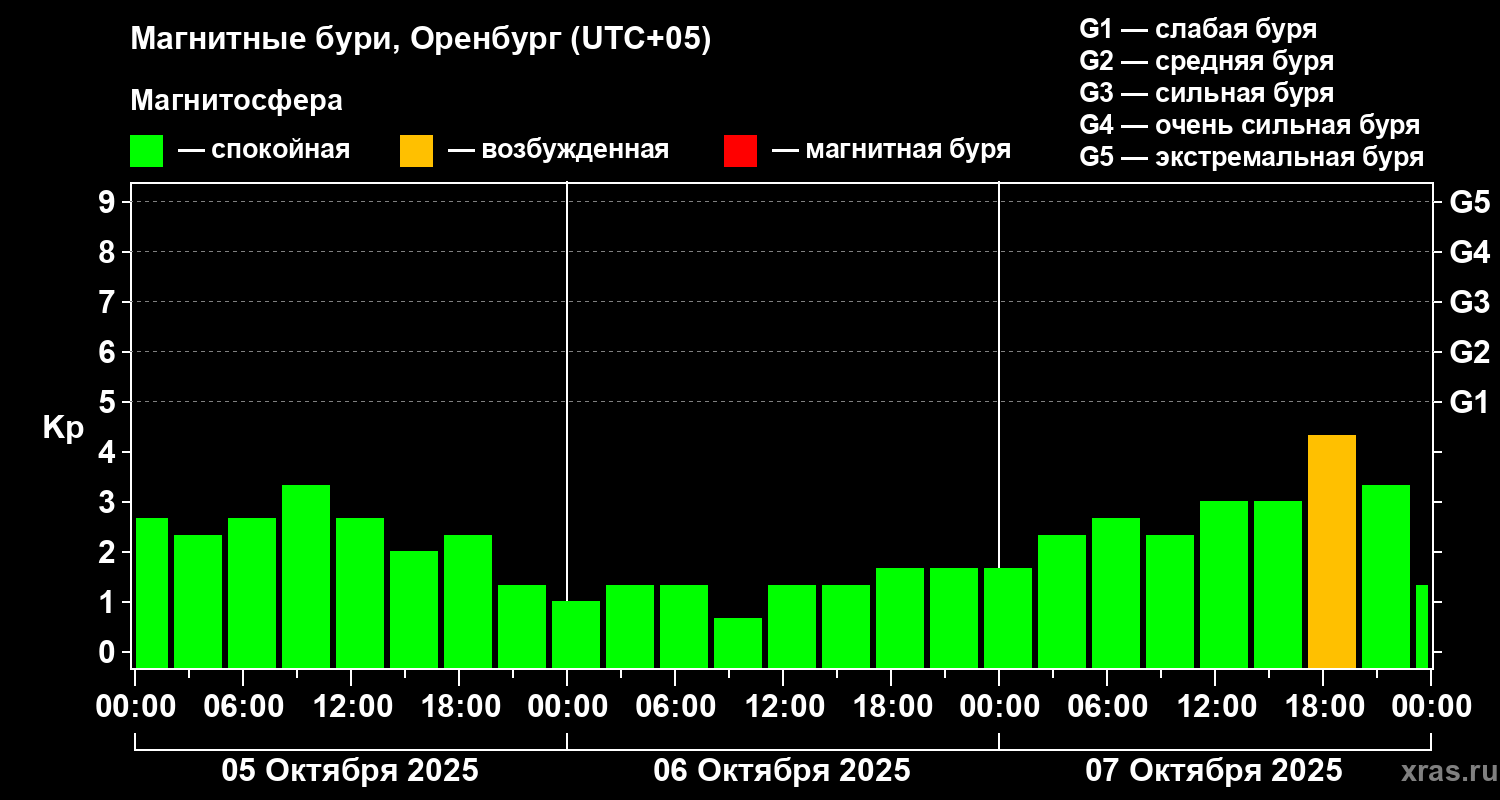 Магнитные бури в Оренбурге — 7 октября 2025 года