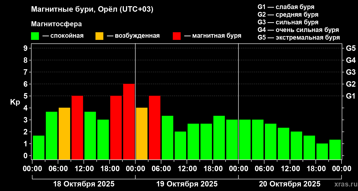 Магнитные бури Орле в октябре 2025 года