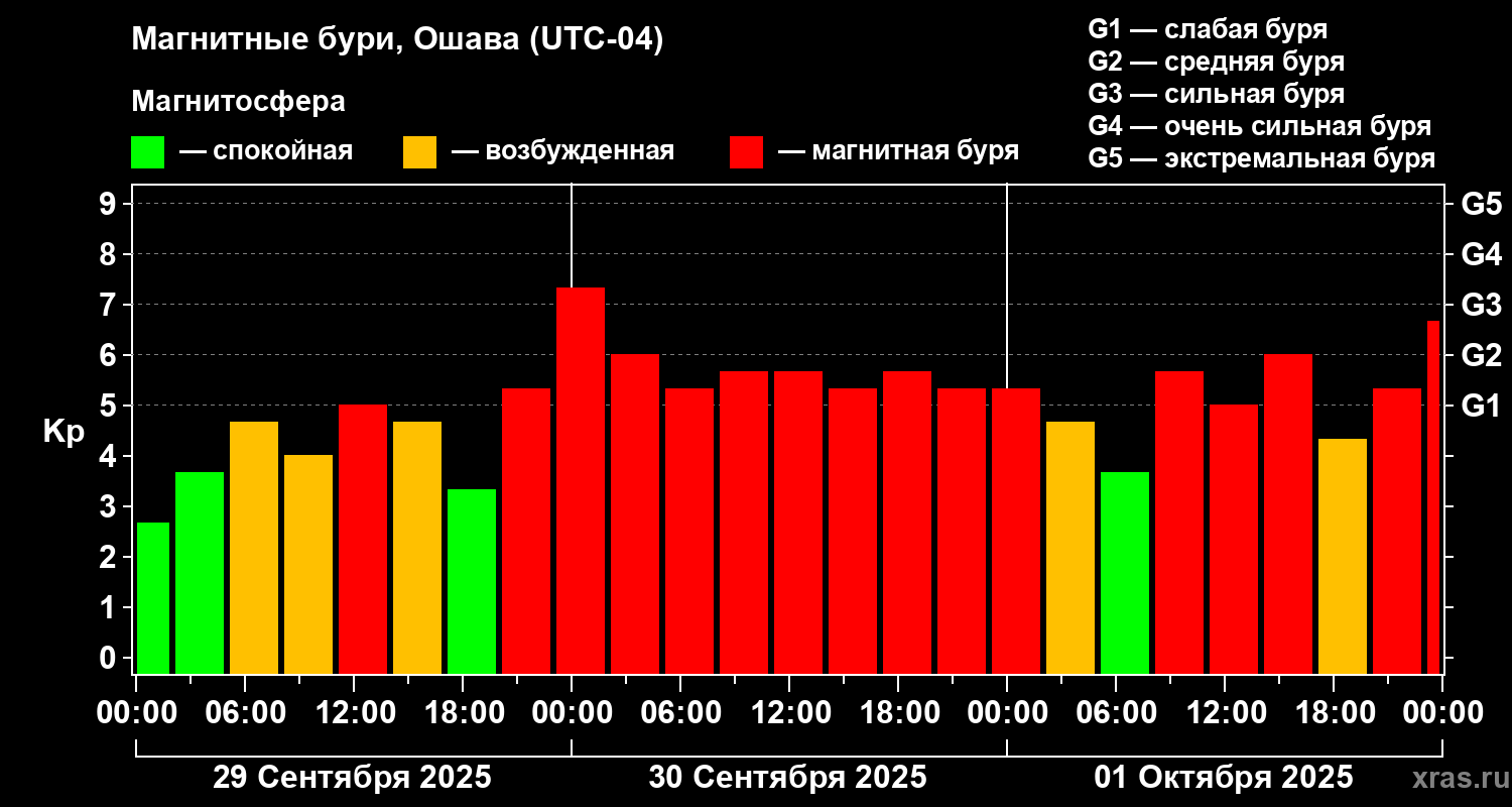 Магнитные бури в Ошаве — 1 октября 2025 года