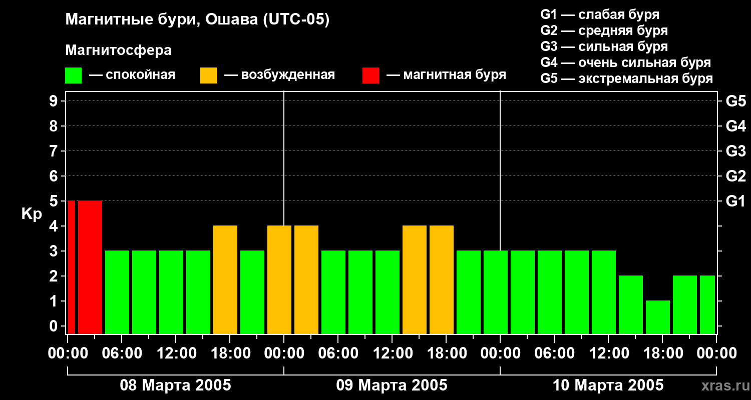Магнитные бури в Ошаве — 10 марта 2005 года