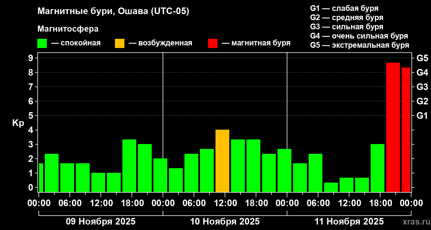 Магнитные бури в Ошаве 11 ноября 2025 года