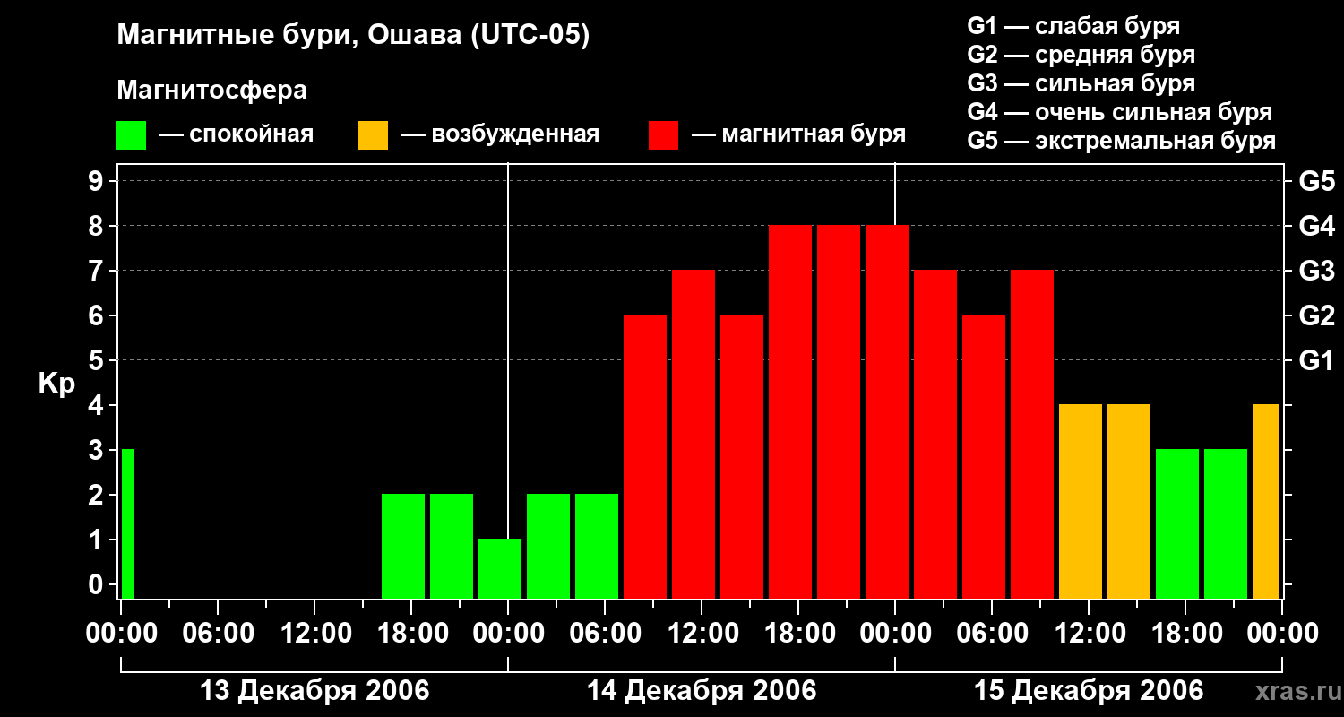 Магнитные бури в Ошаве 15 декабря 2006 года