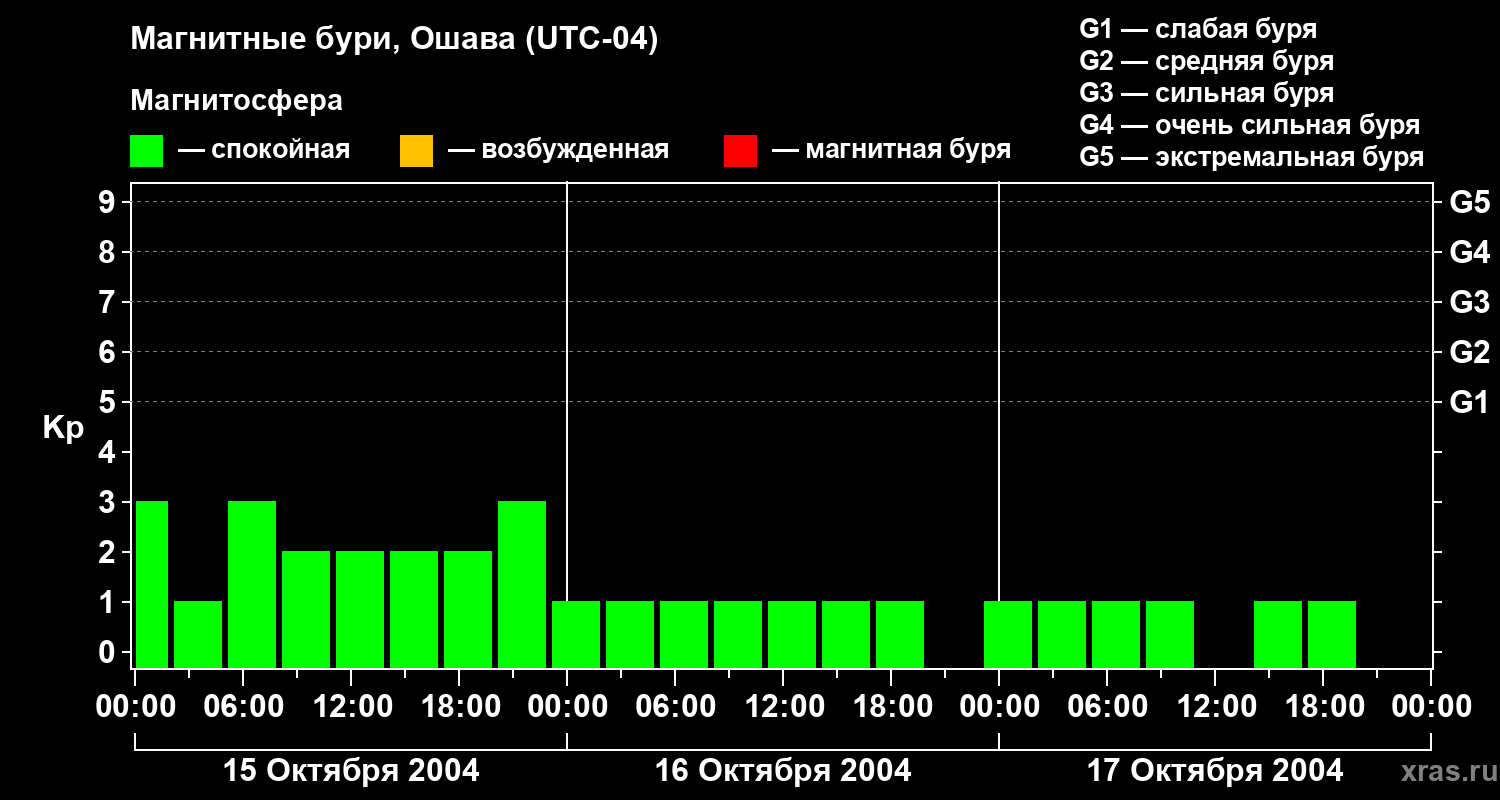 Магнитные бури в Ошаве — 17 октября 2004 года