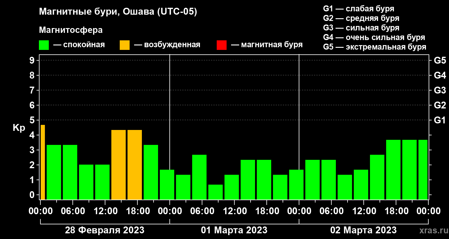 Магнитные бури в Ошаве — 2 марта 2023 года