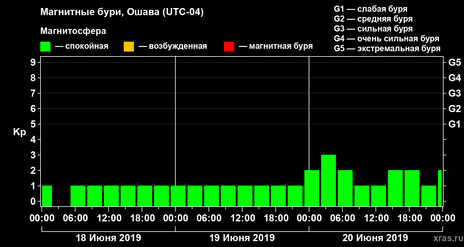 Магнитные бури в Ошаве — 20 июня 2019 года